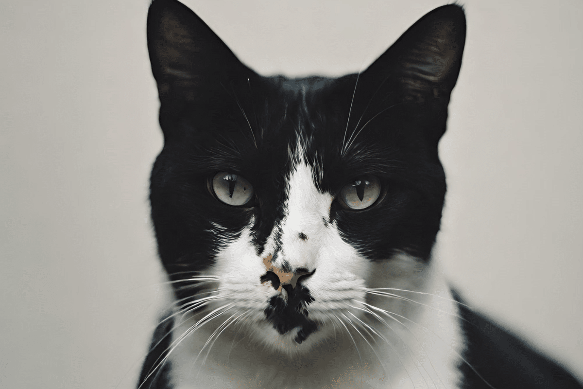 Né sous une étoile particulière, Pucky est un chat qui a immédiatement captivé l’attention avec son apparence singulière. Son faciès distinctif, à la fois charmant et étrange, le distingue nettement de ses semblables. Dès sa naissance, ce petit félin a manifesté des traits insolites qui ont intrigué plus d’un. Son pelage d’un noir profond est parsemé de taches blanches asymétriques, donnant l’impression d’un puzzle inachevé. Mais c’est surtout son visage qui suscite le plus d’étonnement.